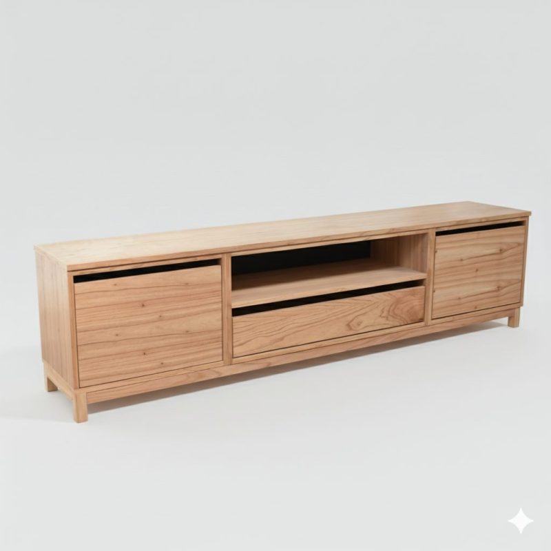 Nuestro rack de tv realizado en madera Petiribi es la fusión perfecta entre diseño moderno y funcionalidad. Sus tiradores de hierro le aportan un contraste visual atractivo y distintivo al igual que las vetas naturales de la madera misma.