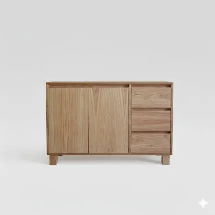 ¡SALE POR TIEMPO LIMITADO! 50% DE DESCUENTO ABONANDO CON TODOS LOS MEDIOS DE PAGOEl vajillero presenta un acabado cálido y natural gracias al enchapado en paraíso, que resalta las vetas y la textura única de la madera. Su diseño bajo y compacto se adapta perfectamente a espacios más reducidos, proporcionando un almacenamiento eficiente.Con dos puertas que ofrecen acceso a compartimentos espaciosos, puedes guardar vajillas, platos y otros artículos grandes de manera ordenada y fuera de la vista. Los tres cajones adicionales proporcionan un espacio adicional para cubertería, manteles u otros accesorios más pequeños, manteniéndolos organizados y fácilmente accesibles.